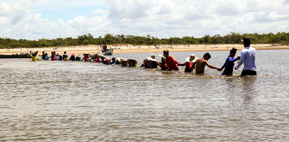 Ao longo do percurso, mais uma tarefa: identificar elementos característicos do mangue, um ecossistema de transição entre ambientes terrestres e marinhos, encontrado em locais de encontro do rio com o mar. Aos poucos, os alunos iam percebendo a riqueza da biodiversidade local. O solo úmido e salino, que contorna o rio Vaza Barris, é tomado por uma vegetação composta de árvores de raízes aéreas, que possibilitam sua respiração. No caminho, alguns crustáceos, peixes e até tartaruga marinha foram encontrados. Outra observação feita pelo grupo, foi sobre a presença de alguns pescadores, recordando que é do mangue que vem boa parte do alimento que o homem captura no mar.