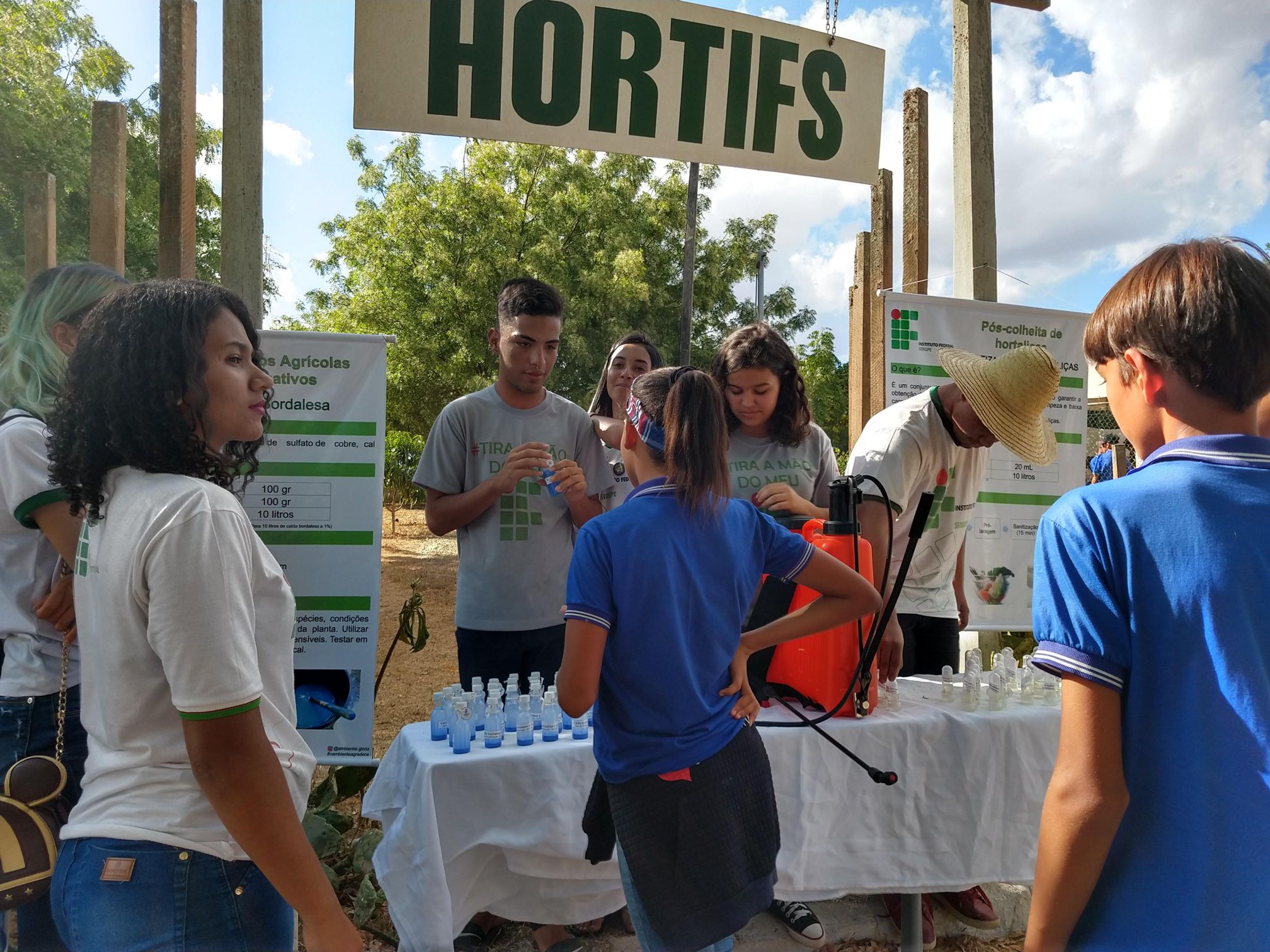 Outros dois stands também foram expostos com atividades do curso Técnico Integrado em Agropecuária. Alunos do 1º ano B apresentaram resultados de atividades práticas da disciplina Produção vegetal I. No stand, alunos abordaram a importância da aplicação de fungicidas em plantas e sanitização de hortaliças com explanações acerca do preparo das soluções, recomendações de uso e distribuição de amostra dos produtos aos visitantes.