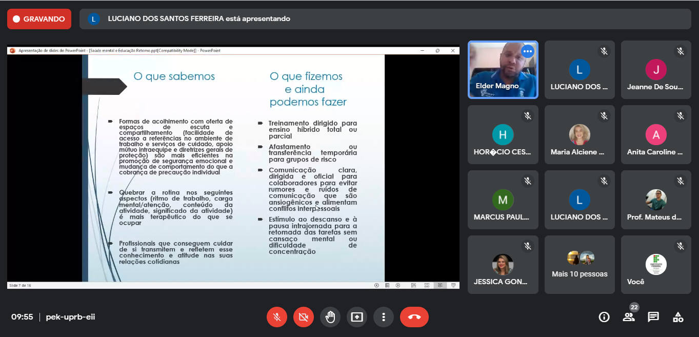 Os docentes e técnicos administrativos lotados no Ensino participaram, especialmente, do evento XV Jornada Pedagógica 2021.2 que teve como tema "Tratando do currículo na educação e saúde mental docente". A programação da Jornada Pedagógica contou com duas palestras e bate-papo com o Prof. Dr. Júlio Resende Duarte do Instituto Federal do Mato Grosso com o tema “Currículos Integrados para o Século XXI” e o psicólogo e professor Elder Magno Freitas com o tema “Modos de cuidar de si e do outro no trabalho em educação”.