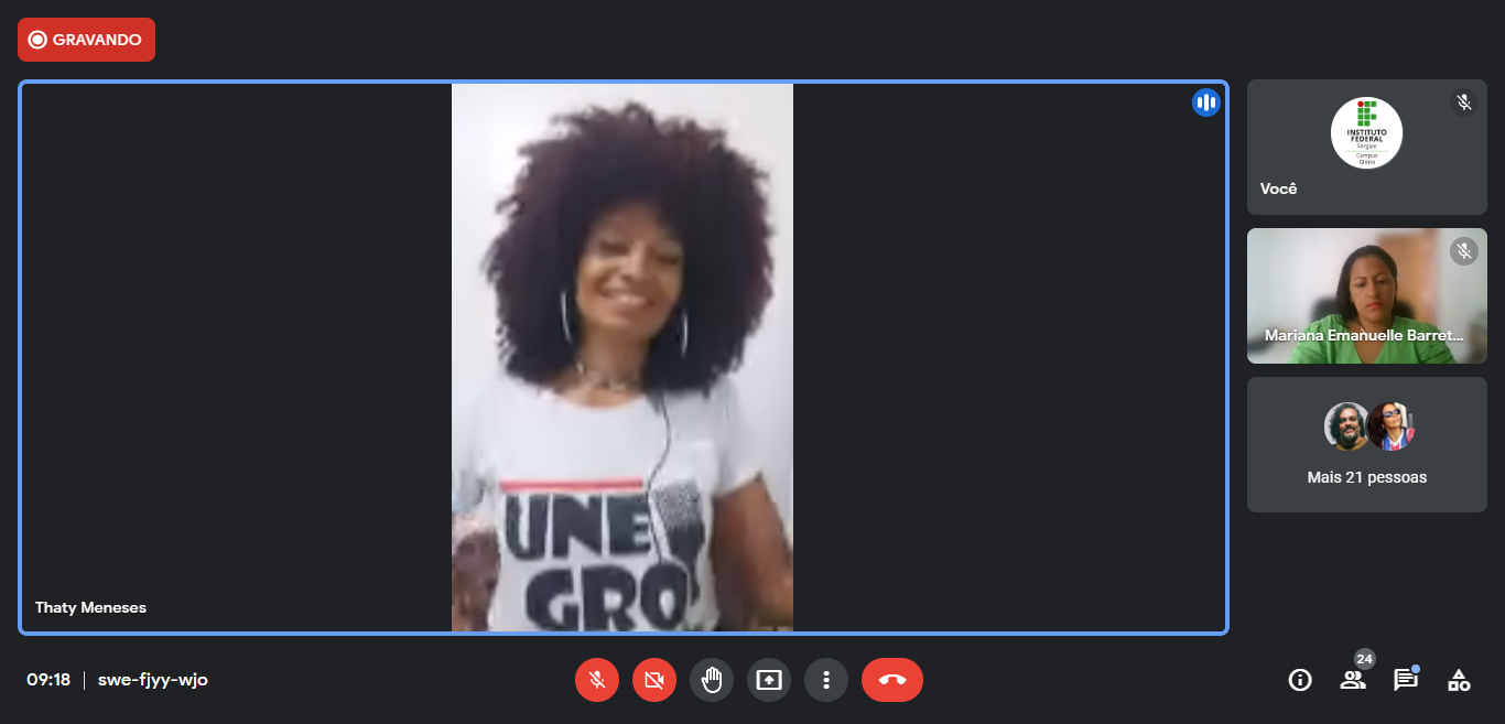 O evento “Novembro Negro: Sankofa - Identidades Afrodiaspóricas” teve início no dia 17 de novembro e já promoveu duas rodas de conversa com as palestrantes convidadas Thatiana Santos Meneses, educadora social, ativista e vice-presidente da União de Negras e Negros pela Igualdade - Unegro.Sergipe com a palestra “Amplie a sua consciência negra” e a Profª. Drª. Cristiane Soares de Santana da Universidade Estadual da Bahia - UNEB/Campus Conceição do Coité que, no dia 19 de novebro, abordou a temática "Segregação Urbana: Os Corpos Negros em Moçambique”,