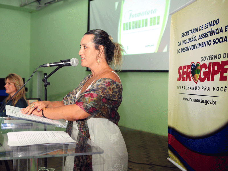 A representante da Seides, a chefe de gabinete Ivaneide Nascimento, representou a secretária de Estado da Inclusão Social, Eliane Aquino, na solenidade. "O Governo do Estado sempre será parceiro de instituições que visem à inclusão e ao desenvolvimento da população sergipana. Em nome da secretária Eliane Aquino, parabenizo a todas as alunas e desejo muito sucesso na carreira de vocês", declara.