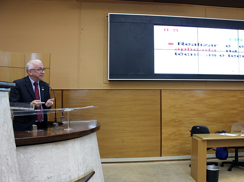 Inicialmente, o professor Ailton apresentou o histórico dos institutos federais, que se iniciou no Brasil em 1909, com as Escolas de Aprendizes Artífices, e vai até a criação dos IFs, em 2008, que têm como finalidade expandir, ampliar e interiorizar a educação profissional no país. "Os IFs possuem um processo educativo e investigativo de geração e adaptação de soluções técnicas e tecnológicas às demandas sociais e peculiaridades regionais", explica.