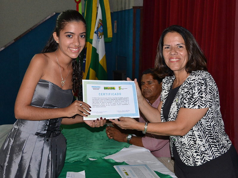 Jailza Elisabete, que recebeu o certificado de Recepcionista de Eventos, disse que o curso abriu para ela uma nova possibilidade de emprego em uma área que está crescendo no estado. Contou que, através do curso, já teve a oportunidade de trabalhar em um evento de grande porte, o Congresso Nacional de Anestesistas. Ela disse ainda que o Pronatec "é um programa importante para que os jovens tenham uma oportunidade de capacitação e emprego".