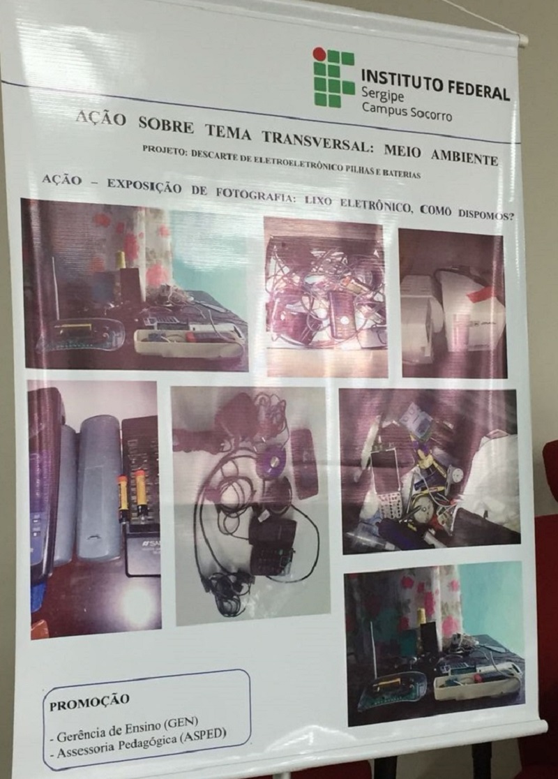 e baterias", em desenvolvimento no Campus Socorro, pelas Gerência de Ensino e Assessoria Pedagógica. Por meio de exposições fotográficas, palestras e projetos de pesquisa os estudantes aprendem acerca da importância da reciclagem para a sustentabilidade das próximas gerações.