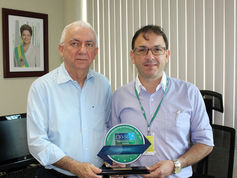 Durante o 7º e-CIO - Encontro de Gestores de TI de Sergipe, evento realizado entre os dias 6 e 7 de novembro no Radisson Hotel, o Instituto Federal de Sergipe (IFS) recebeu um importante prêmio. O diretor de Tecnologia da Informação da instituição, Toniclay Andrade, foi eleito CIO do ano de 2014, em função dos projetos que vêm sendo desenvolvidos nesta área pelo IFS.Segundo o diretor de TI, este prêmio é muito importante, pois destaca a relevância do trabalho que vem sendo realizado no IFS pela Diretoria de Tecnologia da Informação (DTI). “Ressalto que este prêmio é de toda a equipe (CGTI, COIMR, CMSTI, CDGS, CTEL e GOVTI e CTI dos campi), pois sem a ajuda de todos o IFS não teria sido indicado e conquistado esse prêmio”, afirma.