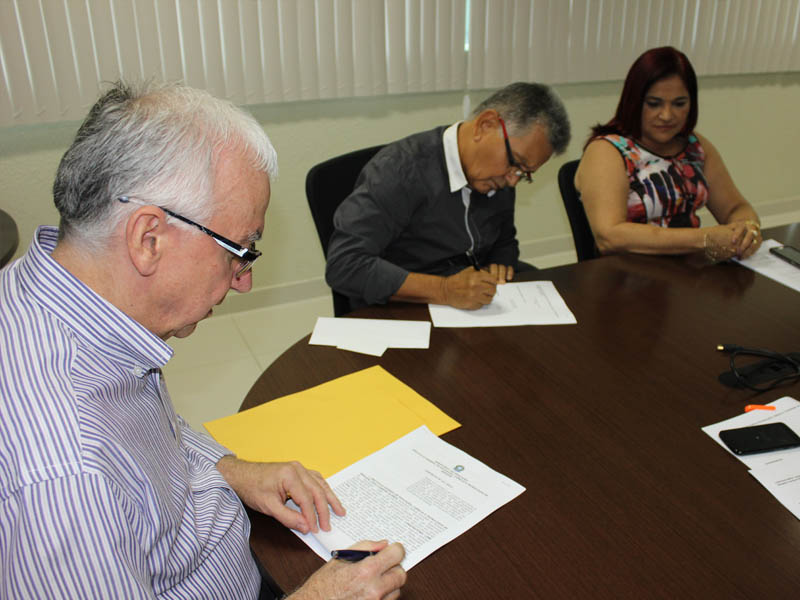 Na manhã desta quarta-feira, 19, foi assinado o termo de contrato para a execução da obra de complementação/conclusão da construção do prédio do Instituto Federal de Sergipe (IFS) - Campus Glória. Estiveram presentes na reunião o reitor do IFS, Ailton Ribeiro de Oliveira, a pró-reitora de Pesquisa e Extensão, Ruth Sales, o diretor geral do Campus Glória, Daniel Rodrigues, o diretor de Planejamento de Obras e Projetos do instituto, Ubirajara da Silva, e o diretor sócio da Construtora Link Ltda., Clarck Platon Bezerra.