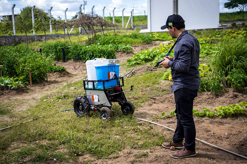 Além disso, Matheus enfatiza que o TratoBot também livra o agricultor de carregar o peso dos irrigadores nas costas. “Nosso robô carrega até 130kg. Então aquelas bombas costais que servem tanto para irrigar, quanto para fazer adubação granular ou líquida, são dispensáveis já que essa atividade pode ser feita totalmente pelo TratoBot”, disse.