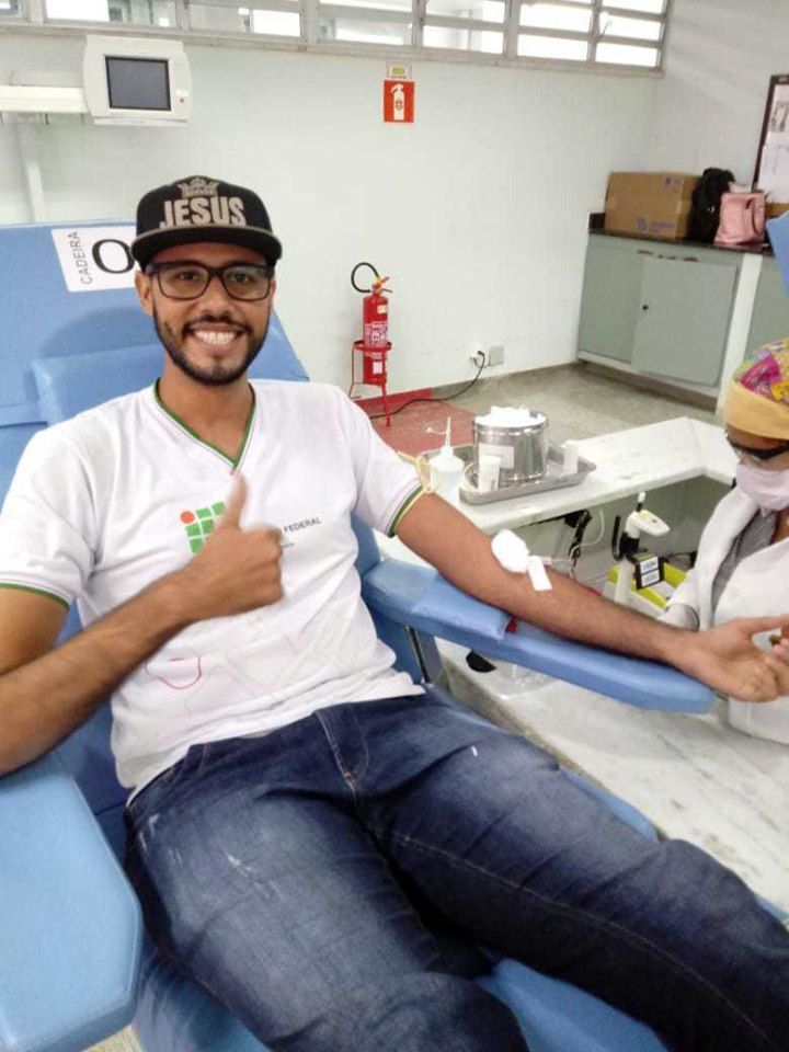 O estudante de Agropecuária do Campus São Cristóvão, Pablo Ricardo Santos de Jesus, 19, participou da campanha de doação de sangue realizada pelo IFS em março de 2018. “Antigamente, eu tinha medo de doar sangue, mas fui incentivado pelos coordenadores sobre a importância, precauções e segurança da doação”, relata Pablo que doou pela primeira vez no ano passado.