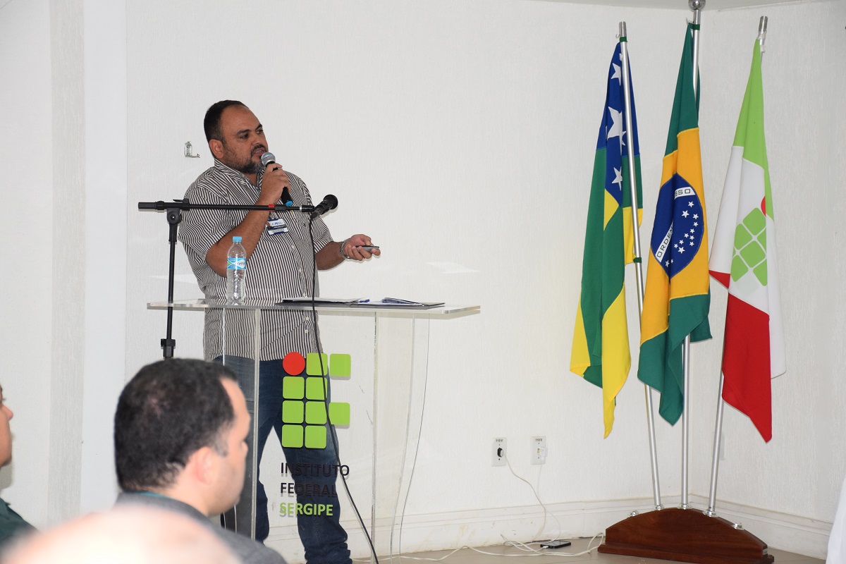 A programação do turno matutino da sexta-feira, 26, iniciou com uma palestra do professor Luam de Oliveira Santos sobre a atuação do Núcleo de Inovação Tecnológica, do qual é coordenador. Ele explicou as áreas de atuação, entre elas a de direito autoral, e explicou o edital Dinove, que selecionou agentes de inovação no IFS. "Esses agentes se tornarão multiplicadores do NIT, levando a cultura de inovação para os campi", ressaltou o coordenador.