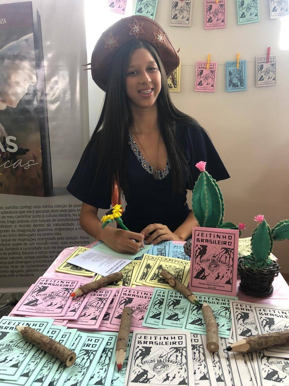 Essa é também uma época movimentada para quem se dedica ao cordel, que envolve a declamação de poemas em textos rimados, que são impressos em folhetos e, originalmente, pendurados em cordas para a venda em feiras. Foi aos 9 anos, durante uma olimpíada de língua portuguesa que a egressa do curso técnico integrado em Agropecuária, Emilly Barreto, descobriu a arte e não parou mais de criar e declamar versos. Atualmente ela estuda Letras Português na Universidade Federal de Sergipe, possui 10 textos publicados em Antologias poéticas nacionais e internacionais, inclusive uma promovida pelo IFS, e já publicou dois folhetos de cordel: "Lampião, Herói ou vilão?" e "Jeitinho brasileiro, o apelido da corrupção".