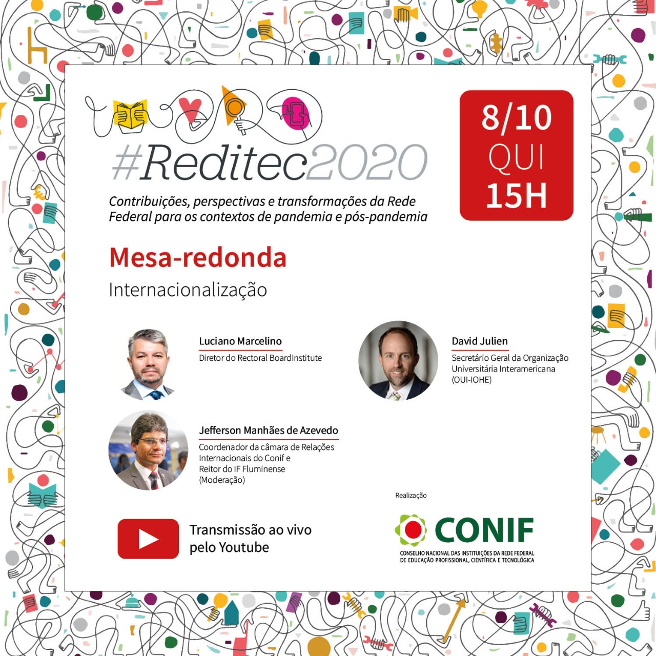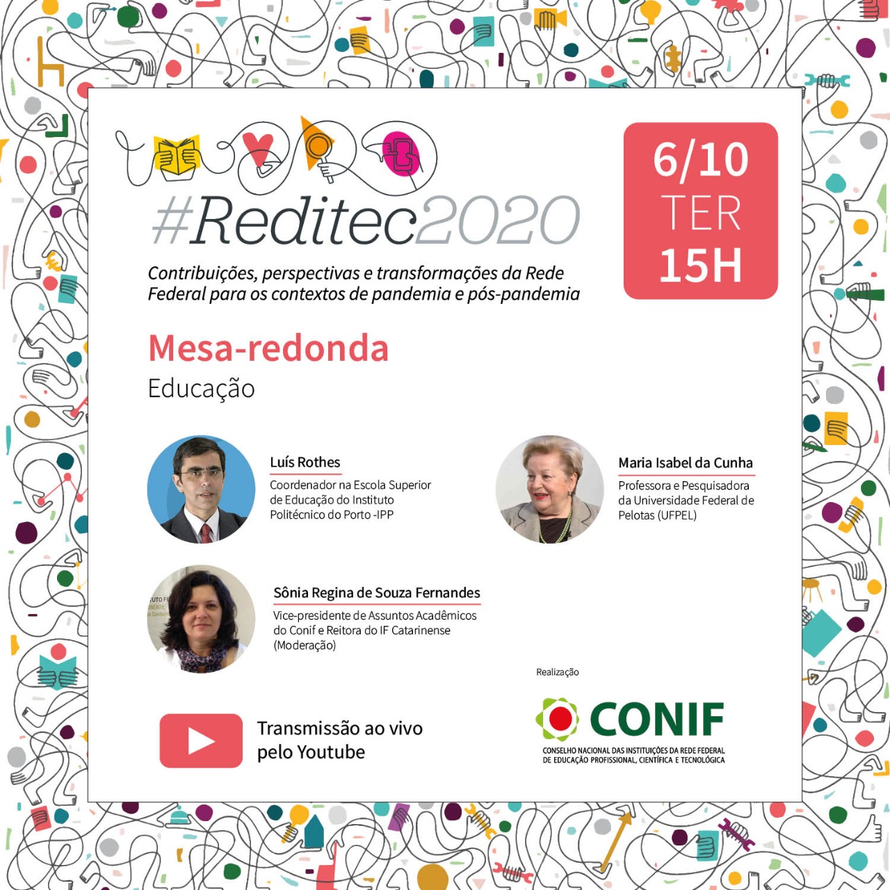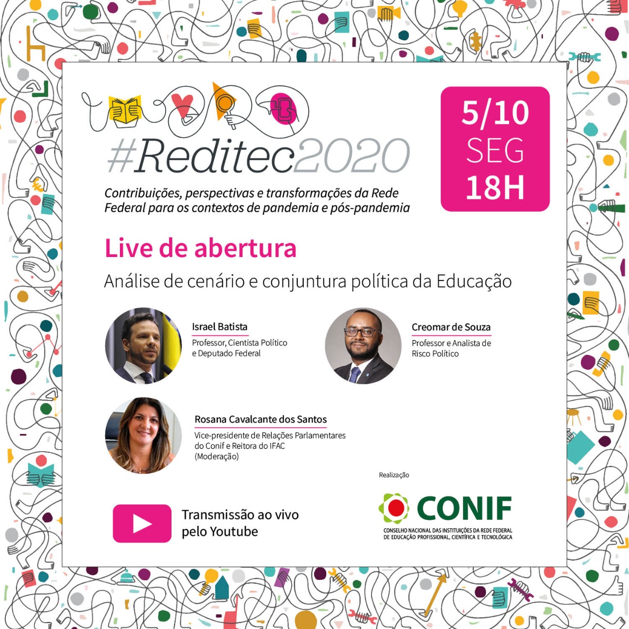 Com o tema “Contribuições, perspectivas e transformações da Rede Federal para os contextos de pandemia e pós-pandemia”, a Reditec 2020 contará com palestras e mesas redondas, que serão transmitidas pelas páginas oficiais do Conif no YouTube e Facebook.
