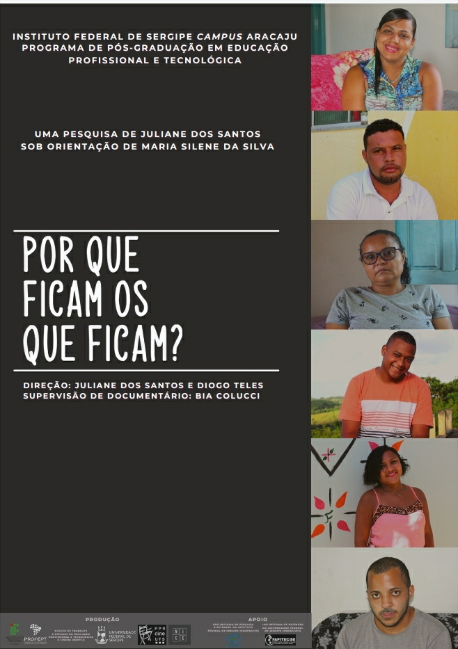 A história de seis alunos que sonham com a conclusão de seus estudos em nível básico é retratada no documentário: “Por que ficam os que ficam?”, da aluna, Juliane dos Santos, sob orientação da professora Maria Silene da Silva, do Mestrado Profissional em Educação Profissional e Tecnológica (ProfEPT) do Instituto Federal de Sergipe (IFS). O material é fruto da pesquisa da discente desenvolvida durante dois anos junto ao Programa de Pós-graduação, sendo seu produto educacional apresentando à comunidade acadêmica da instituição.