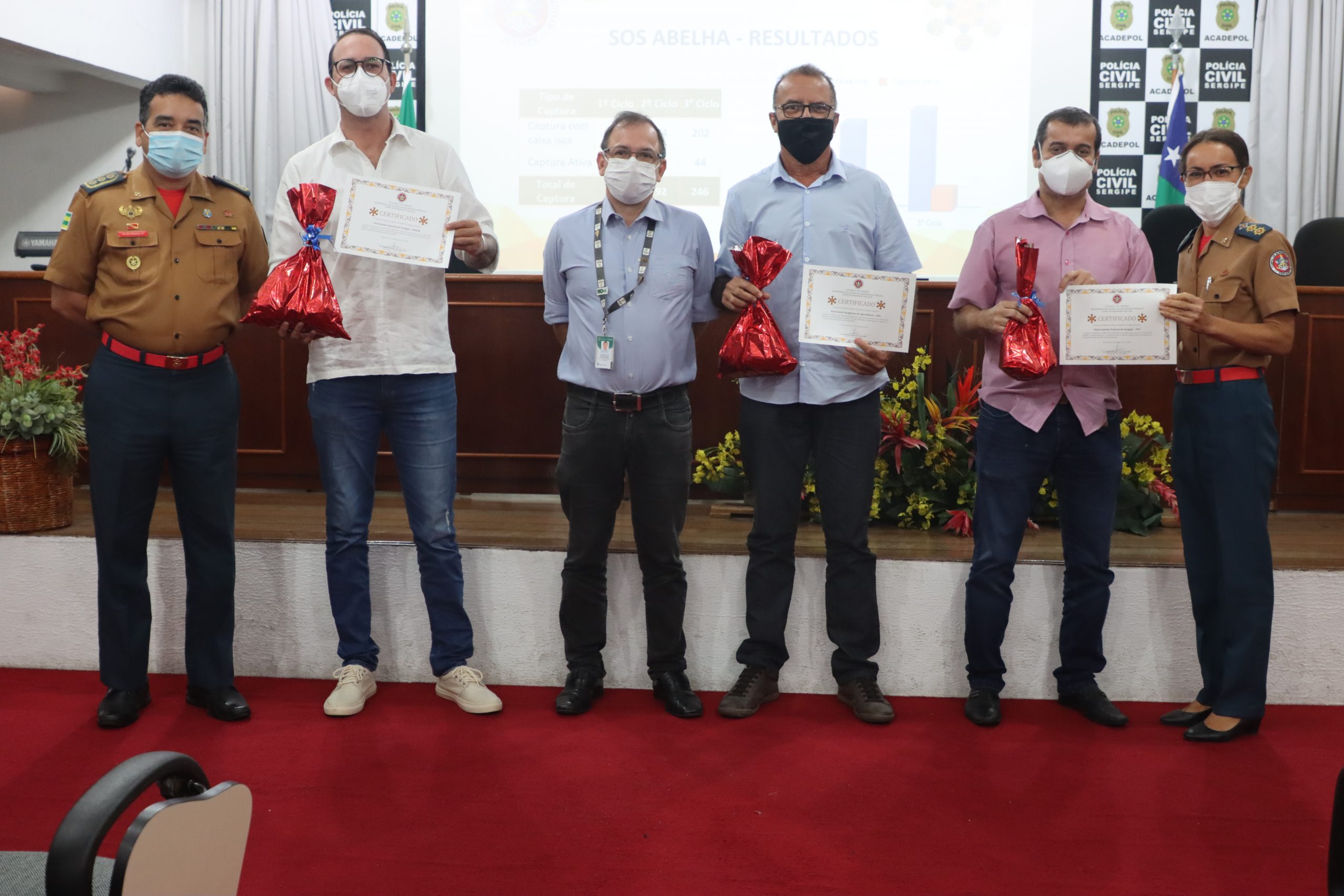 O Instituto Federal de Sergipe (IFS) esteve presente na cerimônia de encerramento da 3ª edição do projeto SOS Abelhas, realizada na última sexta, 30. A iniciativa foi do Corpo de Bombeiros Militar de Sergipe (CBMSE), que atua no programa junto ao IFS, à Universidade Federal de Sergipe (UFS) e à Federação e da Associação Sergipana de Apicultores. O evento foi realizado no auditório da Academia de Polícia Civil de Sergipe (Acadepol), com a entrega de certificados para os colaboradores integrantes do projeto.